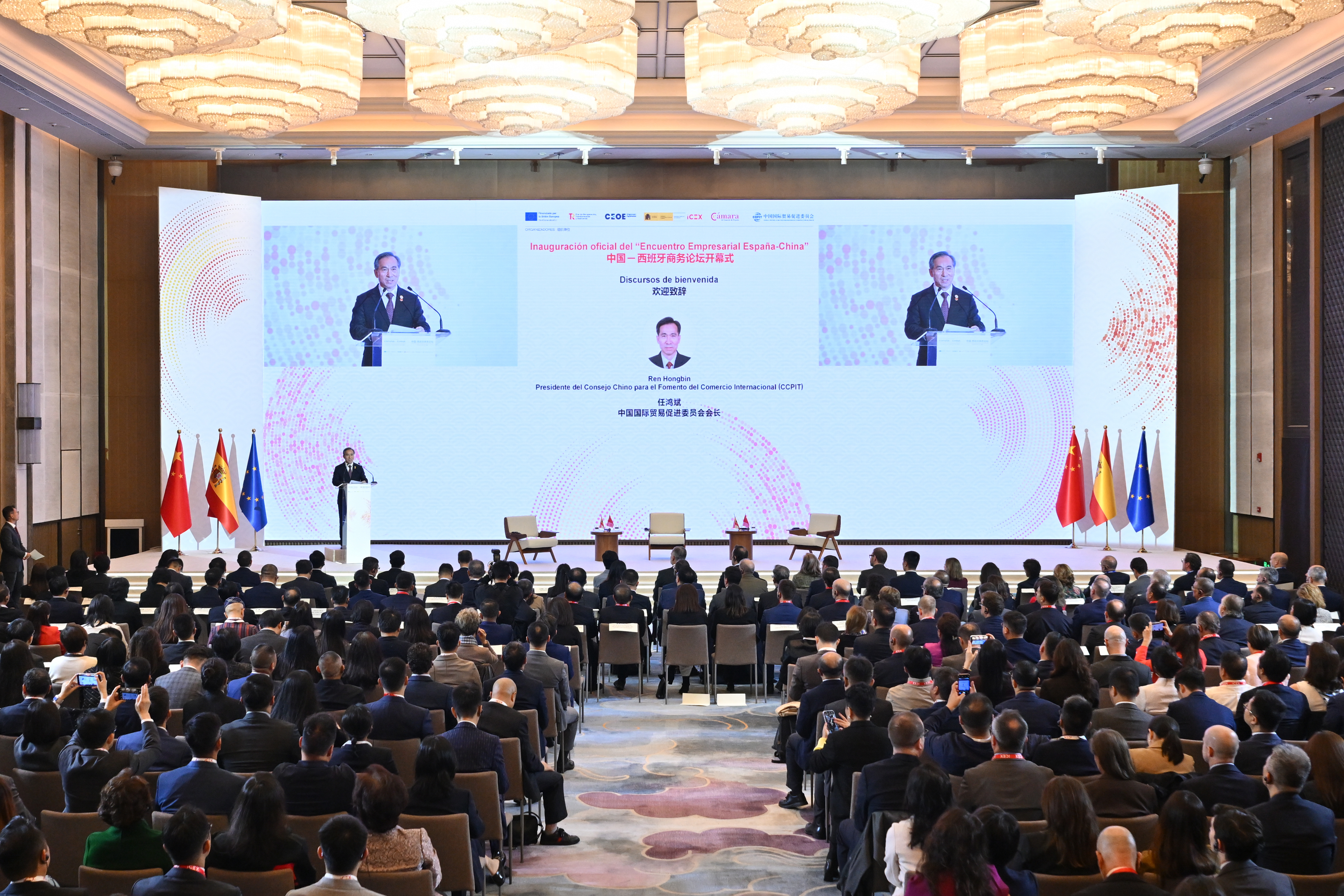 任鸿斌在致辞中积极宣介中共二十届四中全会精神,强调今年是中西全面战略伙伴关系建立20周年,中国贸促会作为中国最大的全国性贸易投资促进机构,将携手西班牙有关机构落实好两国领导人重要共识,为中西工商界加强互利共赢合作搭建高质量平台、提供全方位服务,共同推动两国经贸合作迈上新台阶。