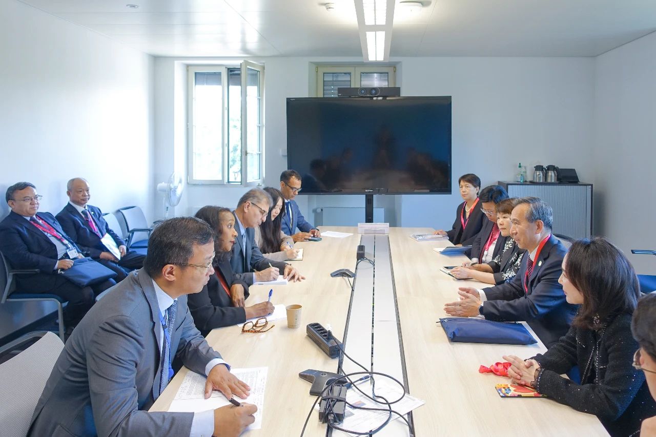 9月10日,中国贸促会会长任鸿斌率中国企业家代表团访问瑞士期间,在日内瓦分别会见世界贸易组织总干事奥孔乔-伊维拉、联合国贸发会议秘书长格林斯潘和国际贸易中心执行主任科克-汉密尔顿,积极宣介中国共产党二十届三中全会精神,并就支持多边主义、维护多边贸易体制、维护全球产业链供应链稳定畅通、加强机构间务实合作、推动落实中非“十大伙伴行动”等议题进行深入交流。