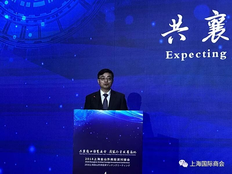 本次“2018上海金山外商投资对接会”以“共襄进口博览盛会、同筑外资发展高地”为主题,这是上海金山区主动对接首届中国国际进口博览会资源,进一步宣传“智造金山”品牌,加强战略合作,推进金山开放型经济发展,将金山区打造成为杭州湾北岸外商投资新高地的重要举措。本次活动上,金山区委书记赵卫星、区长胡卫国、市商务委主任尚玉英与市贸促会会长杨建荣等领导还一同为“上海金山国际进口企业服务园区”成立揭牌。